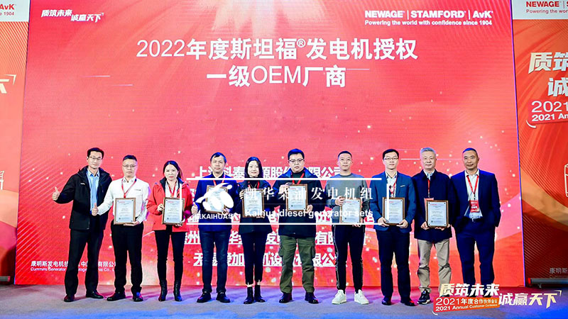 凱華柴油發(fā)電機組有限公司在貴陽安納塔拉度假酒店參加康明斯發(fā)電機技術2021年度合作伙伴會議,我司作為STAMFORD®發(fā)電機一級OEM廠商榮獲康明斯發(fā)電機最佳業(yè)務拓展獎項。在這一年里,凱華和康明斯克服苦難,協(xié)同一心,取得了新的輝煌。希望在數(shù)字化轉型的新動能下,共贏智慧未來! Cummins Generator Technologies 成立于 1904年,以著名的 NEWAGE®、STAMFORD® 制造交流發(fā)電機和 AvK® 品牌樹立行業(yè)標準,從 7.5 到 11kVA,適用于所有發(fā)電機組配置。